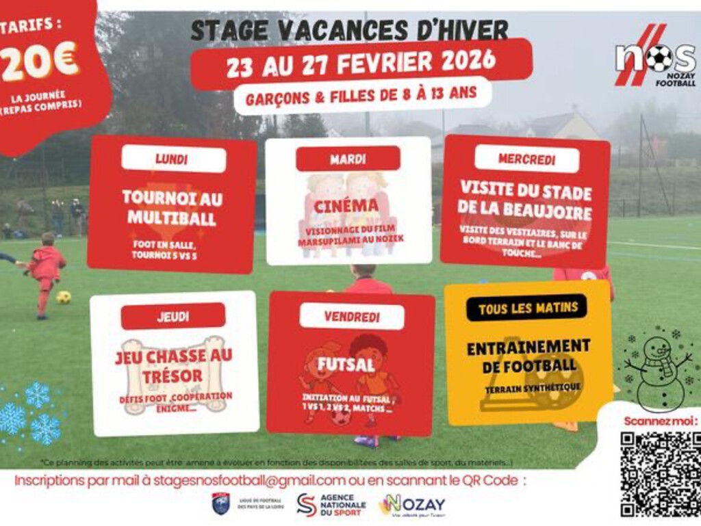 Stage Foot – Vacances d’Hiver 2026 : une semaine sportive à Nozay 13/01/2026 À l’occasion des vacances d’hiver, le Nozay OS Football propose un stage de football destiné aux enfants…